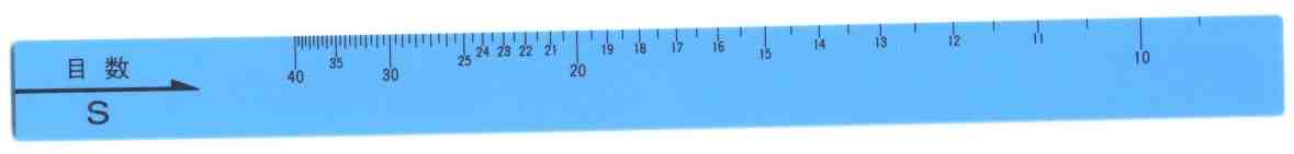 (z.B. 40 Maschen x 60 Reihen bei Feinstrickern). An dem Lineal kann man direkt ablesen, wieviele Maschen/Reihen es bezogen auf 10 cm sind.